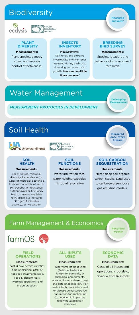 General Mills funds research about the links between farm management, soil health, water management, and different forms of biodiversity.